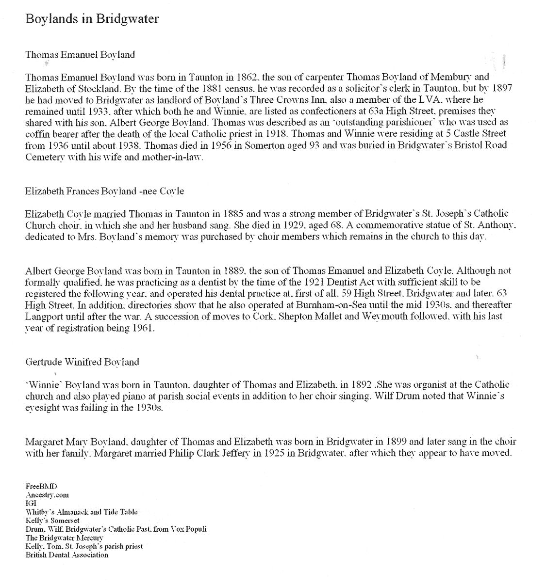 Hetty Boyland 1907,Edward Boyland 1908,Dorothy Boyland 1912. Kathleen Boyland 1914,William Boyland 1916,Winefred Boyland 1917, Joseph Boyland 1920,Charles Boyland 1920,Ivy Boyland 1923,and Joyce Boyland,1928.